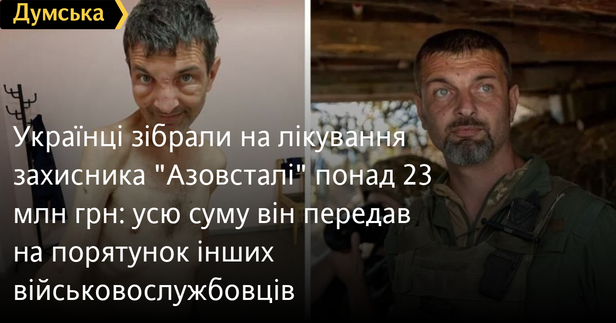 Звільнений з російського полону захисник «Азовсталі» Михайло Діанов, для якого українці зібрали 23 млн 430 тис. грн, передав усю суму на лікування поранених українських воїнів.