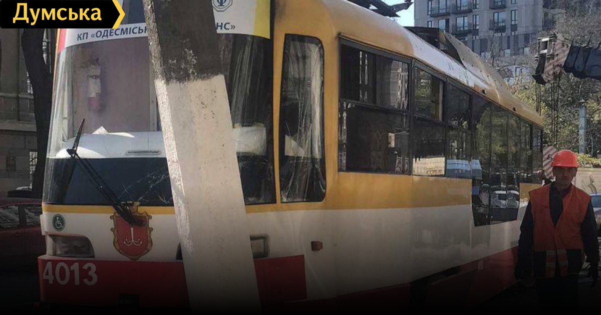 Сошел с рельсов и протаранил столб трамвай, следовавший по маршруту №28. Как передает корреспондент «Думской», происшествие случилось сегодня утром на улице Леонтовича. По информации пресс-службы КП «Одесгорэлектротранс», сход с рельсов произошел из-за наезда вагона на посторонний предмет. В результате аварии работа маршрута остановлена. Жертв и пострадавших нет. СМЕРТЬ РОСІЙСЬКИМ ОКУПАНТАМ! Помітили помилку? Виділяйте слова з помилкою та натискайте control-enter Новини по цій темі: 17 жовтня 2025: Хвилина мовчання: зупинити одеський транспорт змогли тільки копи, і то не скрізь - у мерії кажуть, що вивчають можливості (фото, відео) 30 серпня 2025: Машина вилетіла в кювет: мер Рені потрапив в аварію, його мати загинула, а маленький син у лікарні (фото) 18 серпня 2025: Троє загинули, один у лікарні: на трасі Одеса-Рені водій Mercedes не пропустив фуру (фото) |