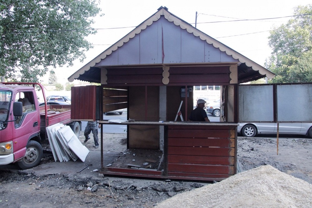 На пересечении Левитана и Королева проводится традиционная для современной Одессы смена МАФов. Вот уже два дня на небольшом пятачке за магазином «Сильпо» сотрудники управления торговли демонтируют торговые ряды. Начали, как водится, ночью. Сейчас рабочие сваривают конструкции новых павильонов (принадлежащих уже одному человеку), а владельцы старых торговых точек подсчитывают убытки и подыскивают новое место. Большинство смиренно приняли удар судьбы. Несколько павильонов — «Одесский каравай» и лотки с овощами — просто передвинули дальше по Левитана. СМЕРТЬ РОСІЙСЬКИМ ОКУПАНТАМ! Помітили помилку? Виділяйте слова з помилкою та натискайте control-enter Новини по цій темі: 2 травня 2024: Управління торгівлі мерії Одеси про свою війну з літнім майданчиком кафе на Катерининській: власники поводилися зухвало 25 квітня 2024: Труханов оголосив джихад одеському кафе і хоче знести його маленький настил: інші мер Одеси вперто не помічає 16 травня 2023: СБУ і поліція затримали завідувача меморіалу 411-ї батареї: йому інкримінують вимагання за розміщення кіосків (фото) 3 червня 2022: Кому война, а кому… Чиновница мэрии Одессы вымогала взятку у владельца продуктового магазина (фото, видео) 2 лютого 2022: На Греческой задержали сборщика дани с торговцев (видео) 14 січня 2022: Установка МАФов в Одессе подорожает в два раза |