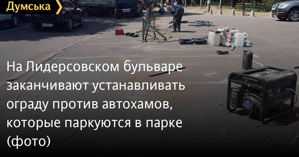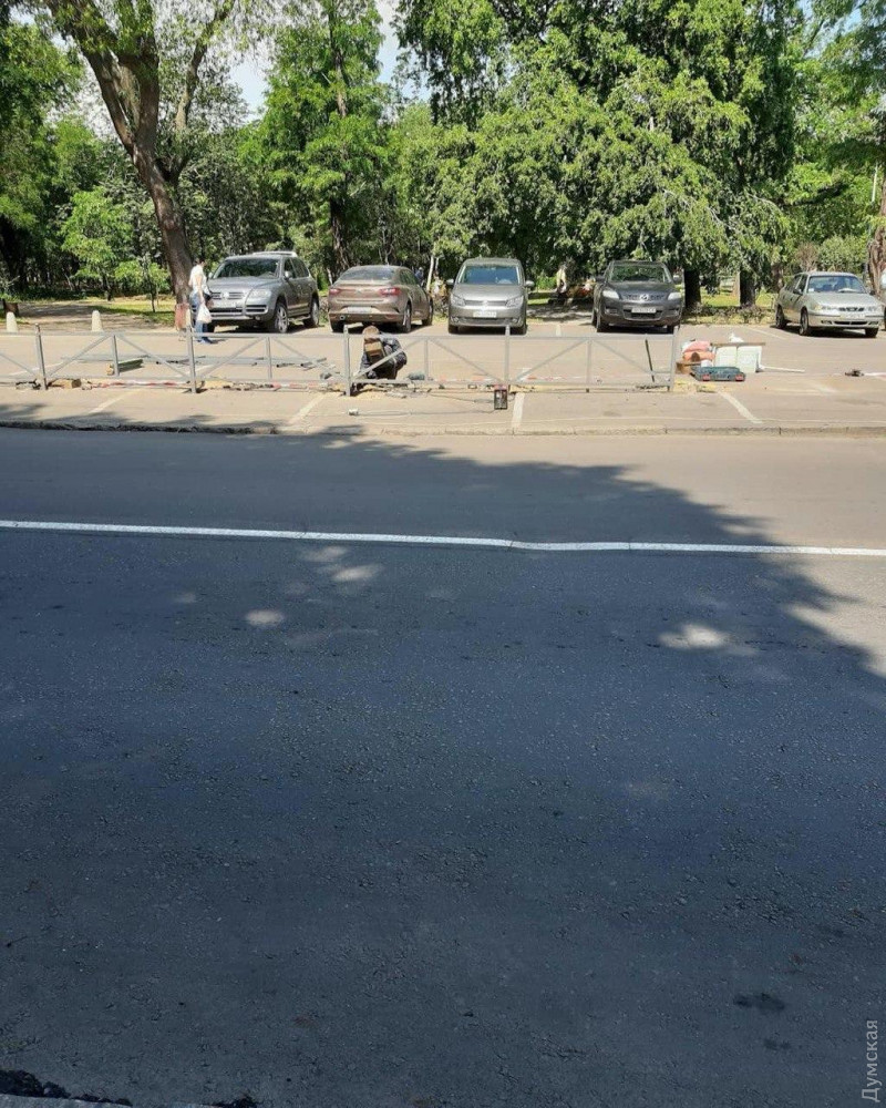 Установку антипарковочного ограждения завершают на Лидерсовском бульваре работники КП «Горзелентрест».