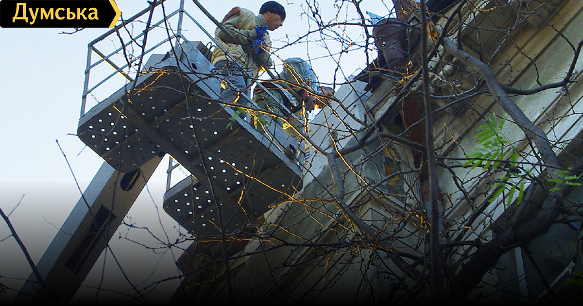 В Одессе представители строительной организации приступили к восстановлению эркера чердака старинного дома на углу Льва Толстого и Каретного переулка, который рухнул в ночь на 16 октября.