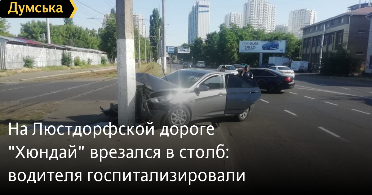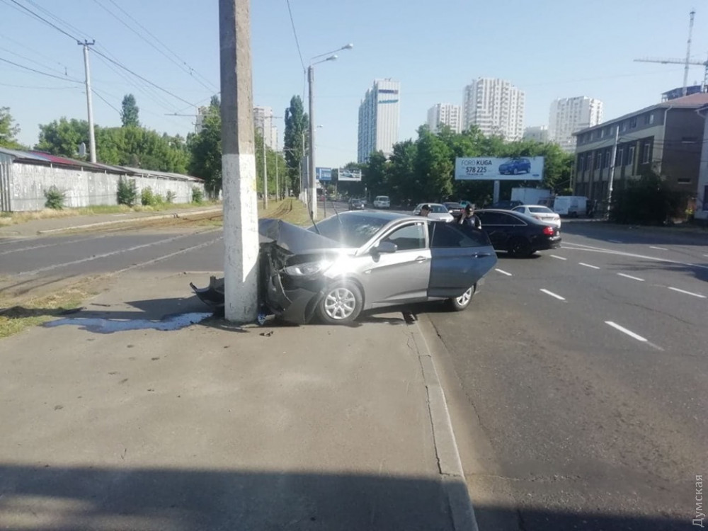 Как сообщили в патрульной полиции, водитель автомобиля «Хюндай Акцент» ехал по Люстдорфской дороге в направлении улицы Дмитрия Донского, не справился с управлением и врезался в столб.