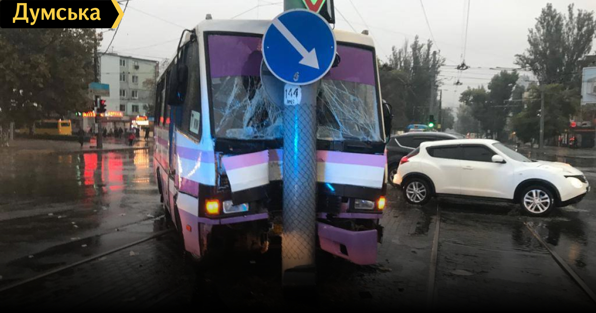 На Люстдорфской дороге маршрутка врезалась в столб: пострадали девять пассажиров
