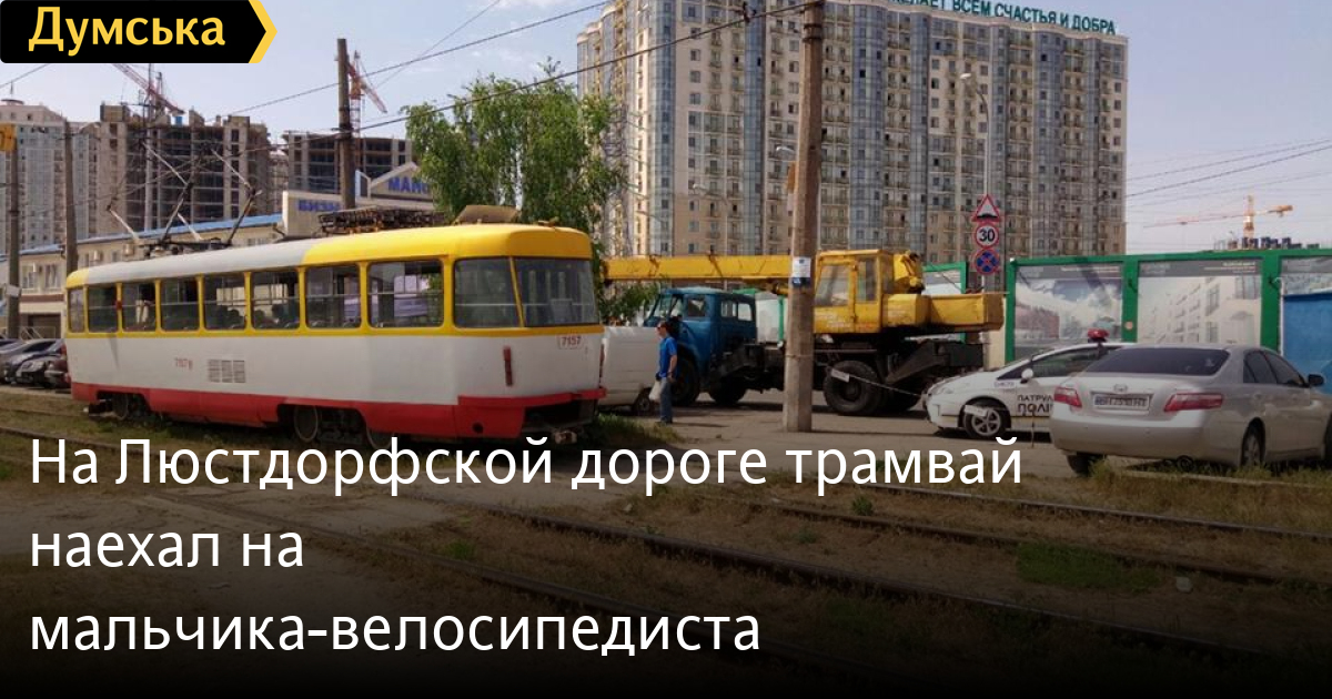 Трамвай, следовавший по маршруту №3, сбил мальчика-велосипедиста на 11-й станции Люстдорфской дороги в Одессе.