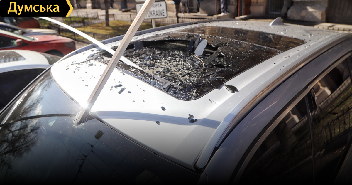На Маразлиевской ветер сдул с крыши алюминиевые трубы: они проткнули джип
