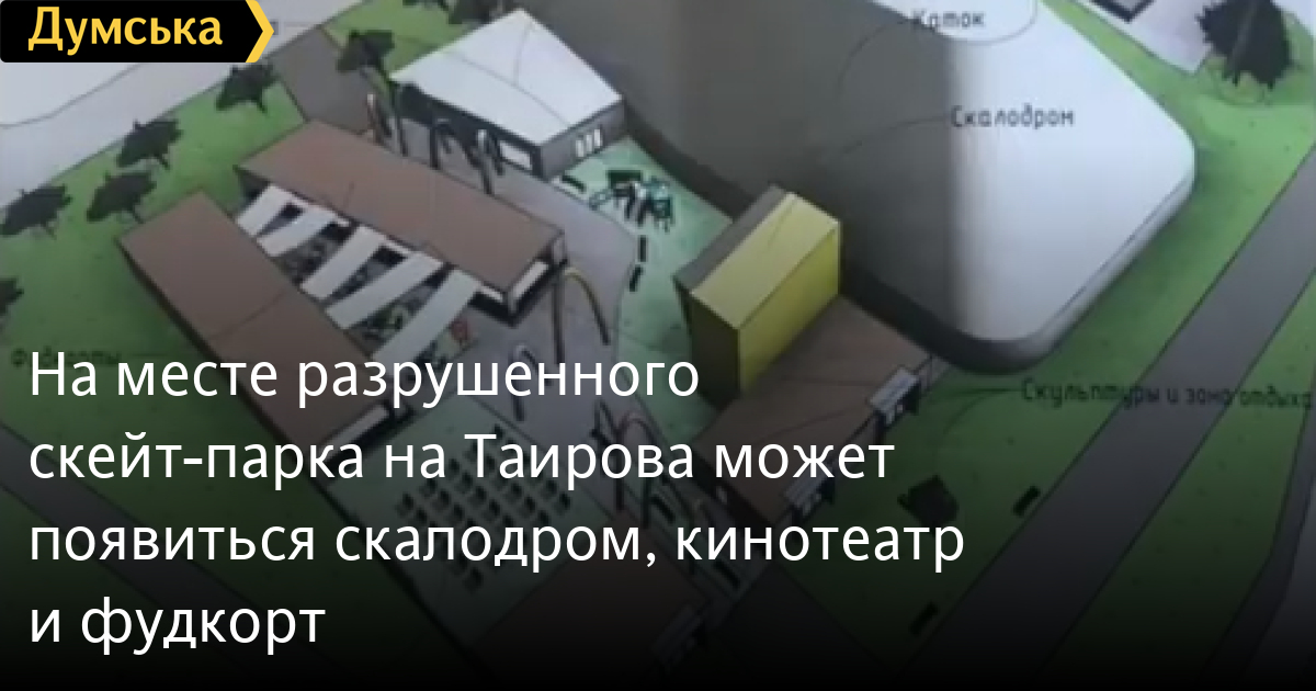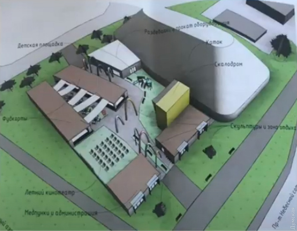 Однако, похоже, городская власть решила сохранить социальную функцию этой территории. Как уже сообщала «Думская», скейт-парка здесь не будет из-за небольших размеров площадки. Но на заседании исполкома был представлен один из вариантов использования территории — со скалодромом, катком, кинотеатром, фудкортом и детской площадкой.