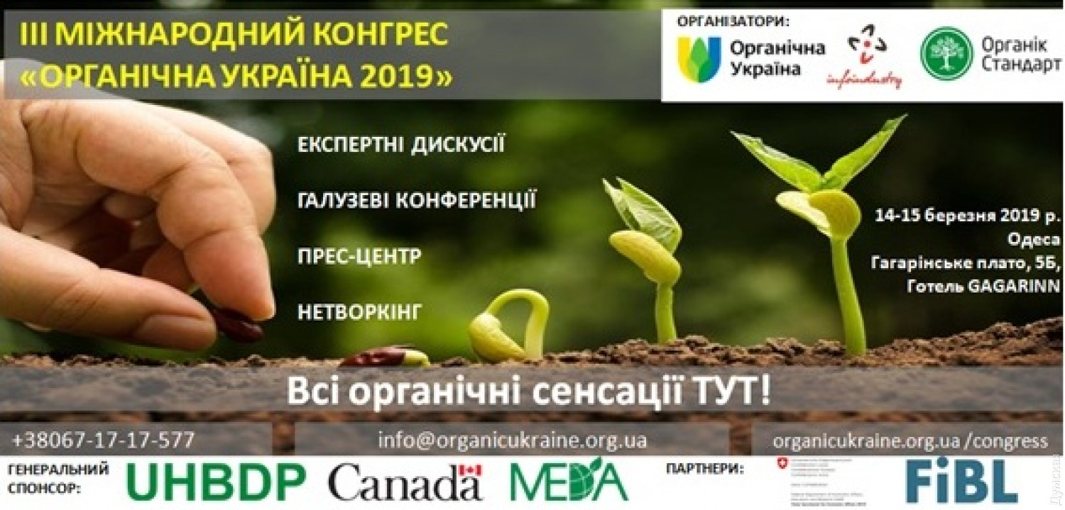 14-15 марта 2019 года в Одессе пройдет III Международный конгресс «Органическая Украина 2019». Это широкоформатное мероприятие, которое включает экспертные дискуссии, отраслевые конференции, тематические блоки, пресс-брифинг.