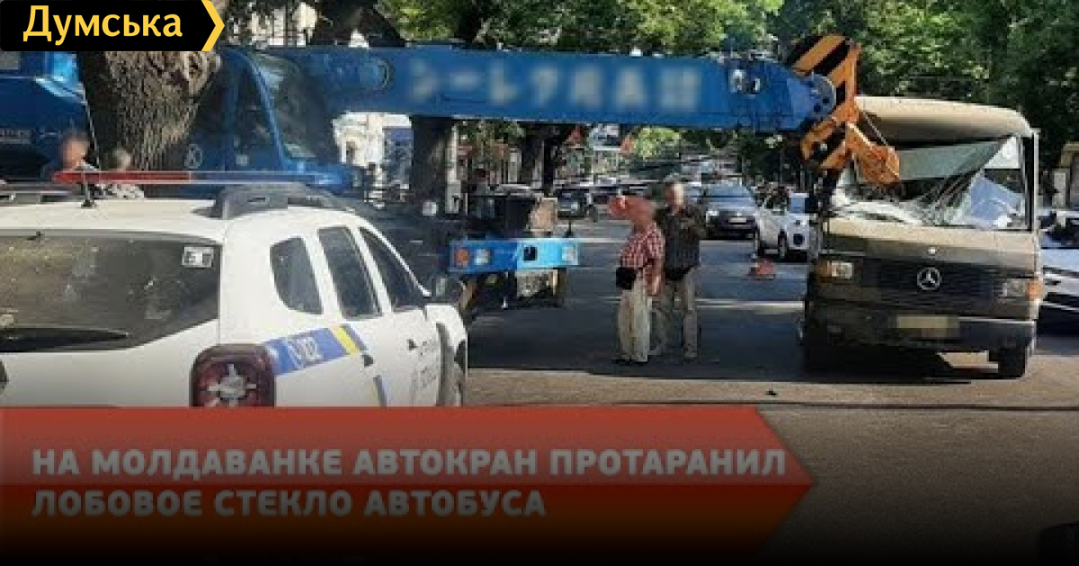 Водитель автокрана, выезжая с придомовой территории, не пропустил маршрутный автобус, который ехал по Степовой. В результате, маршрутка столкнулась со стрелой крана. Два пассажира автобуса обратились за медицинской помощью.