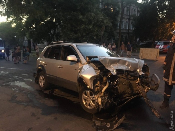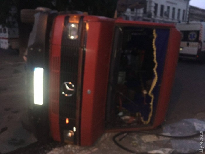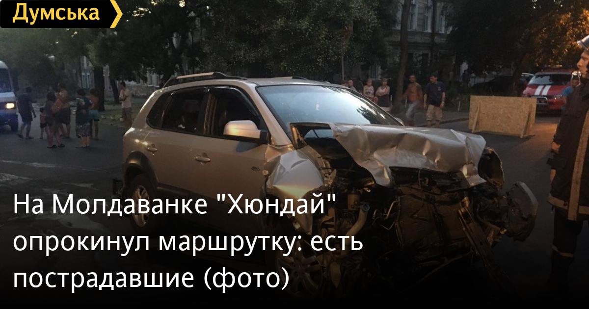 На углу Ризовской и Раскидайловской «Хюндай Туксон» врезался в маршрутку №540 и опрокинул ее.