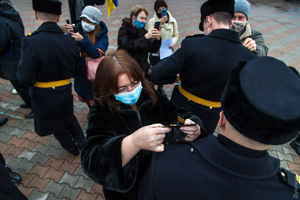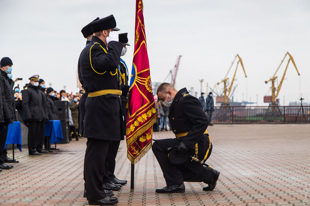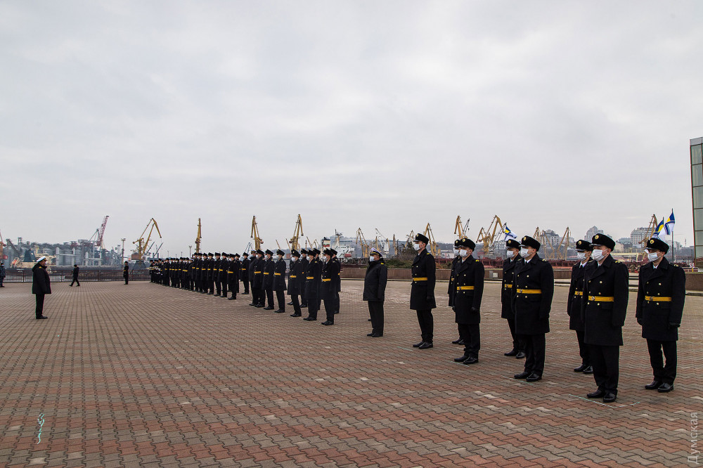 «Это первый выпуск нашей магистратуры, люди, которые проучились больше пяти лет, — отметил в напутственном слове командующий ВМС. — Это офицеры, которые стали на защиту государства в 2015 году, в условиях начала агрессии Российской Федерации, участники боевых действий. Выпускники со всех уголков нашей страны: из Луганской области, Донецкой, с востока и запада, севера и юга, — стоят сегодня в едином строю. Это еще раз подчеркивает соборность нашей державы».