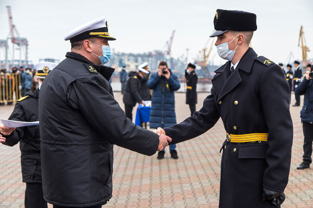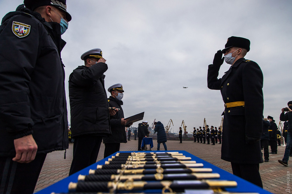 Лейтенантские погоны и кортики из рук командующего национальным флотом контр-адмирала Алексея Неижпапы получили 45 молодых офицеров, передает корреспондент «Думской».