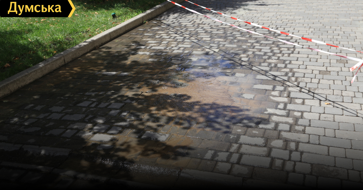 Возле Центра еврейской культуры на Нежинской, 77 из-под тротуарной плитки течет вода. Судя по большим лужам на Тираспольской площади, «родник» бьет уже давно. Место аварии ограждено, присутствует аварийная бригада, но ремонтные работы пока не начались.