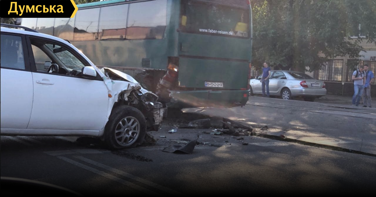 Легковой автомобиль столкнулся с автобусом в районе дома на Николаевской дороге, 201.
