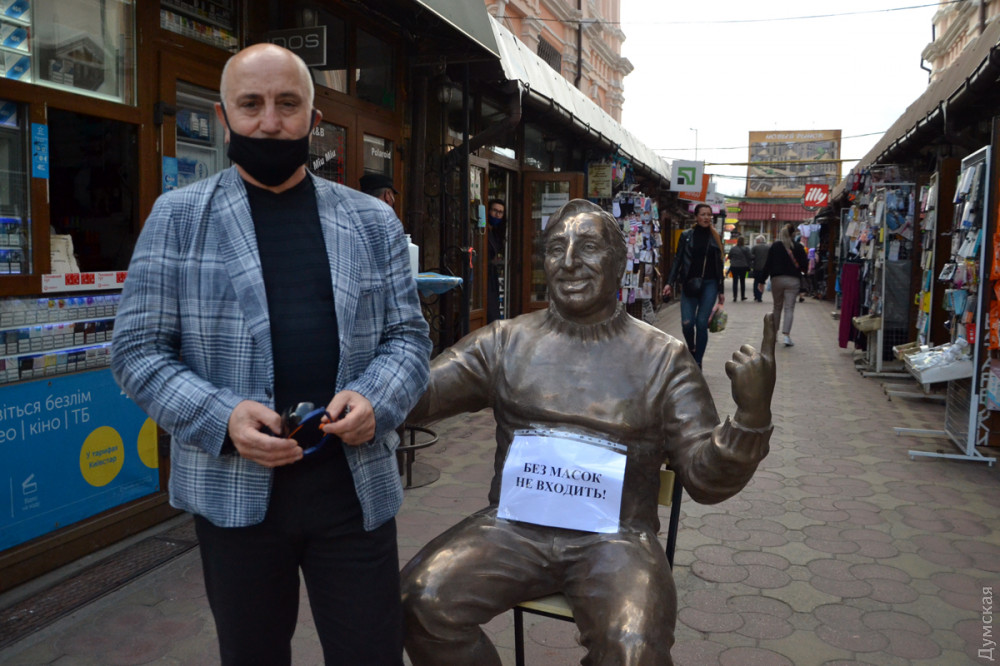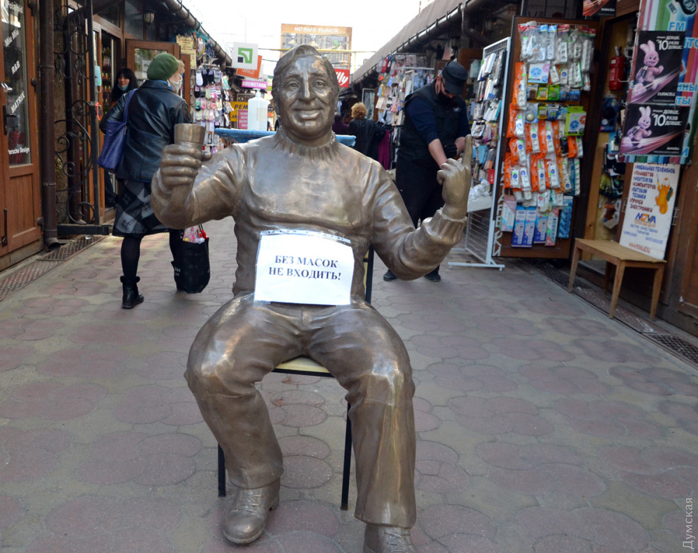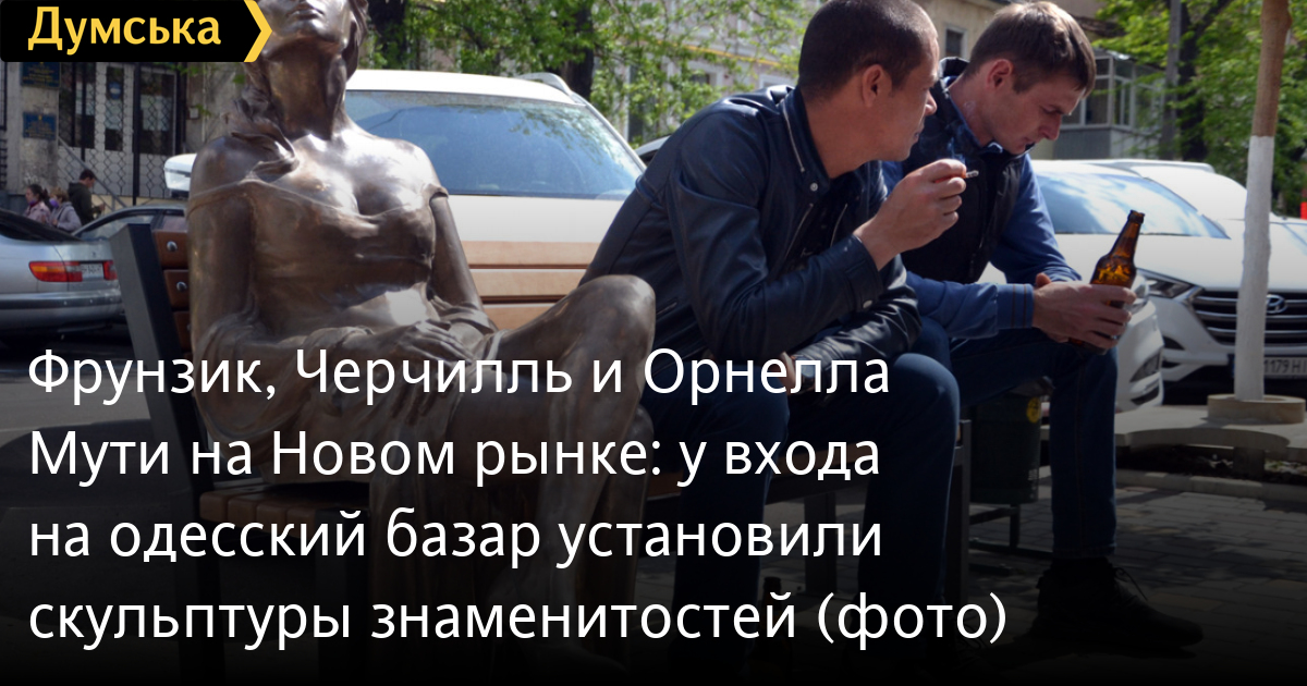 У центрального входа на одесский Новый рынок, что на Торговой улице, установили скульптуры британского премьер-министра Уинстона Черчилля, армянского актера Фрунзика Мкртчяна и итальянской кинодивы Орнеллы Мути.