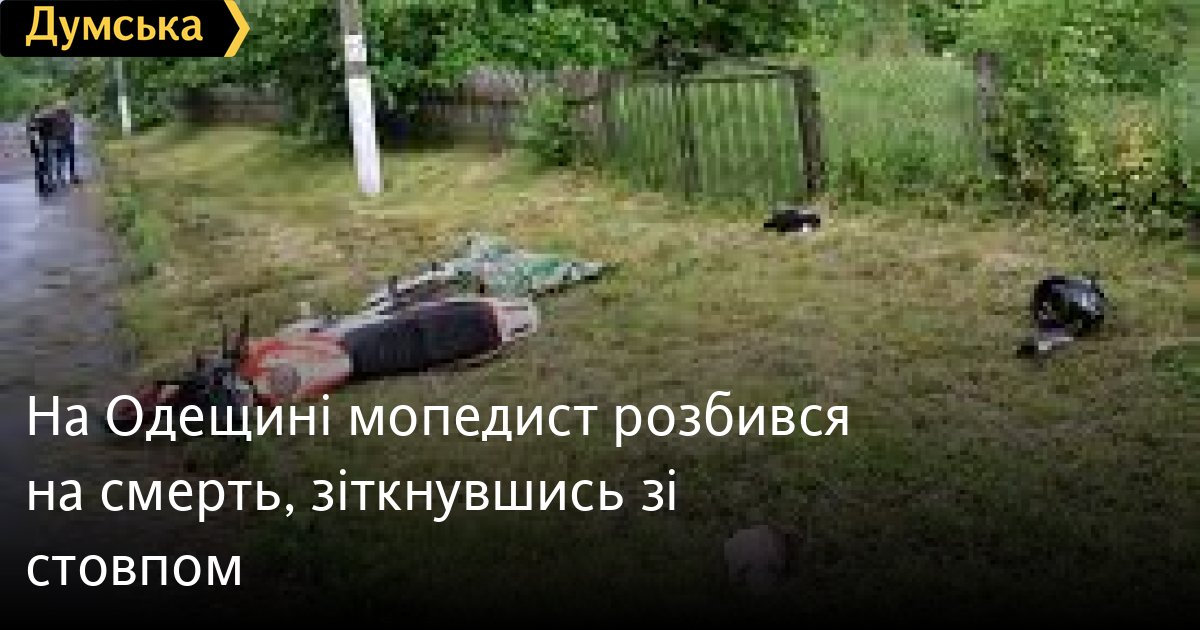 На Одещині мопедист розбився на смерть, зіткнувшись зі стовпом38-річний мопедист розбився на смерть, зіткнувшись з опорою ЛЕП на півночі Одеської області. Як стало відомо «Думській», чоловік не впорався з керуванням і з'їхав на узбіччя, де і врізався в стовп. Від отриманих травм він помер на місці. СМЕРТЬ РОСІЙСЬКИМ ОКУПАНТАМ! Помітили помилку? Виділяйте слова з помилкою та натискайте control-enter |
