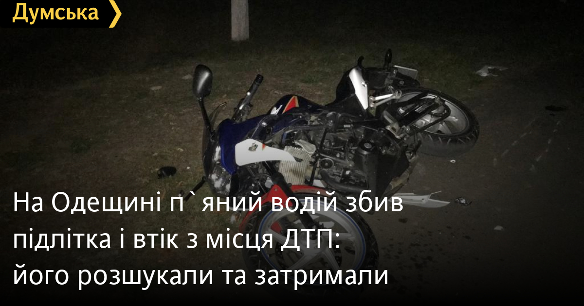 35-річного водія легковика, який п'яним збив підлітка на мотоциклі та залишив місце пригоди, затримали.