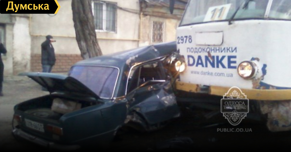 Как сообщают очевидцы, между Высоким переулком и Алексеевской площадью в машину врезался трамвай, следующий по маршруту №11.