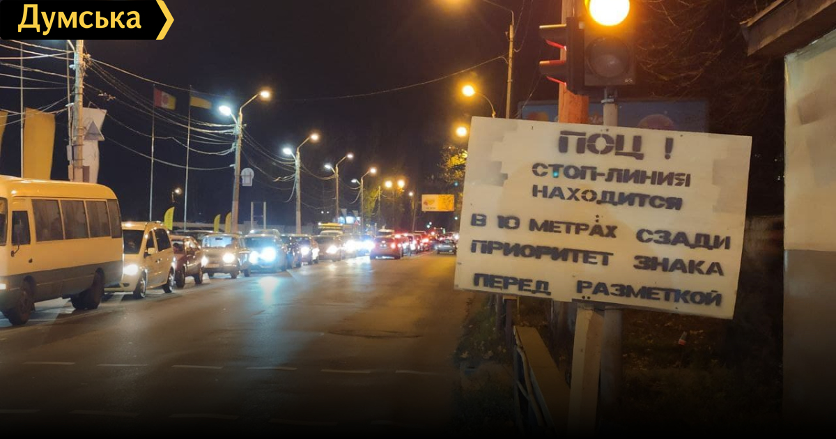 Необычная табличка, призывающая водителей соблюдать правила дорожного движения, появилась на одесских Черемушках.
