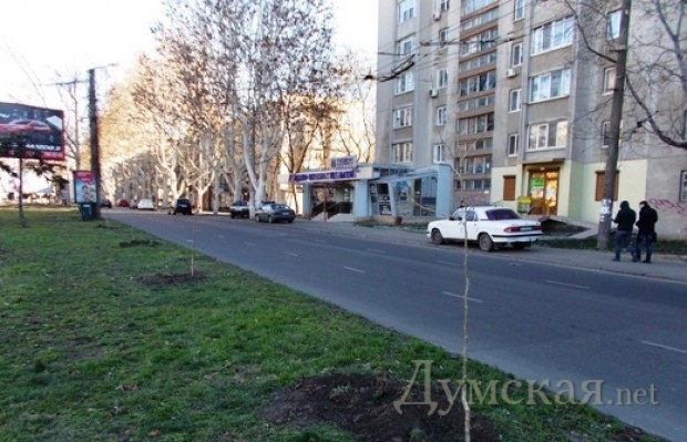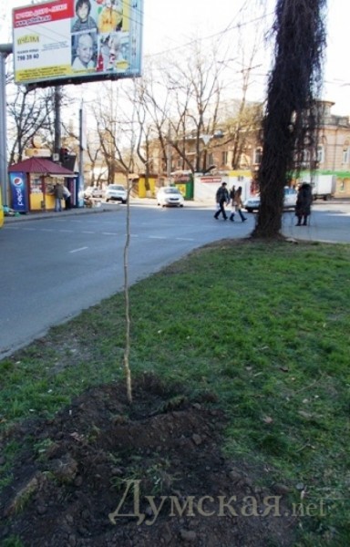 Коммунальное предприятие «Горзелентрест» продолжает высадку молодых деревьев на улицах Одессы.