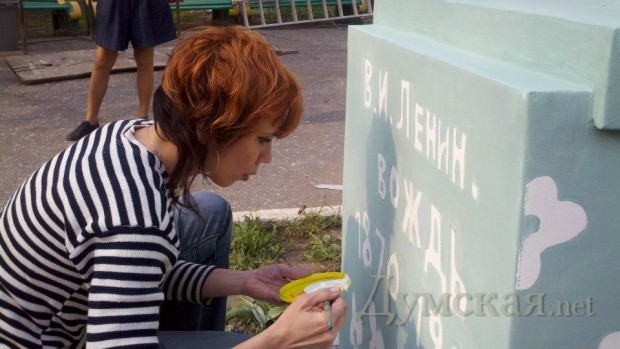 Для этого они выбрали памятник вождю, сохранившийся на одной из городских баз отдыха, и раскрасили изваяние, подобно древнеримским статуям (как известно, представление о бесцветной античной скульптуре — заблуждение). В результате монумент из безликого символа ушедшего государства превратился в произведение искусства.