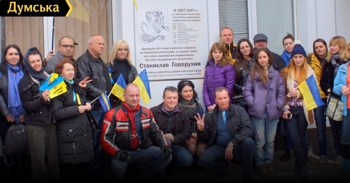 Игорь! Не поверите-я у них(Говорухиных)собаку покупал, щенка от их бассета Али-2.Общался с ними(Галиной и Станиславом)они тогда на Энгельса жили.Нормальные адекватные люди с присущими всем, особенно талантливым, заморочками. Кто знает, кроме самого Говорухина и тех кто общался с ним со стороны украинских националистов, насколько его они доставали! ?Правильно-никто, а вот заявить о себе(насчитал 25-30 человек на фото), полив грязью выдающегося художника-пожалуйста. Выдающимся его делает перечень тех фильмов, который указан на плакатике, и уверен, что рано или поздно, появится мраморная доска с его именем на здании киностудии, а вот злопыхателей(они доносы уже сочиняют на неугодных! ?), количество которых не входит даже в арифметическую погрешность, канет в вечность. Вы не хуже меня знаете какими «странными» бывают выдающиеся люди-об этом писано-переписано, но вот за то, что человек выразил открыто свою позицию, устраивать дешёвый флеш-моб не по-одесски гадливенько.