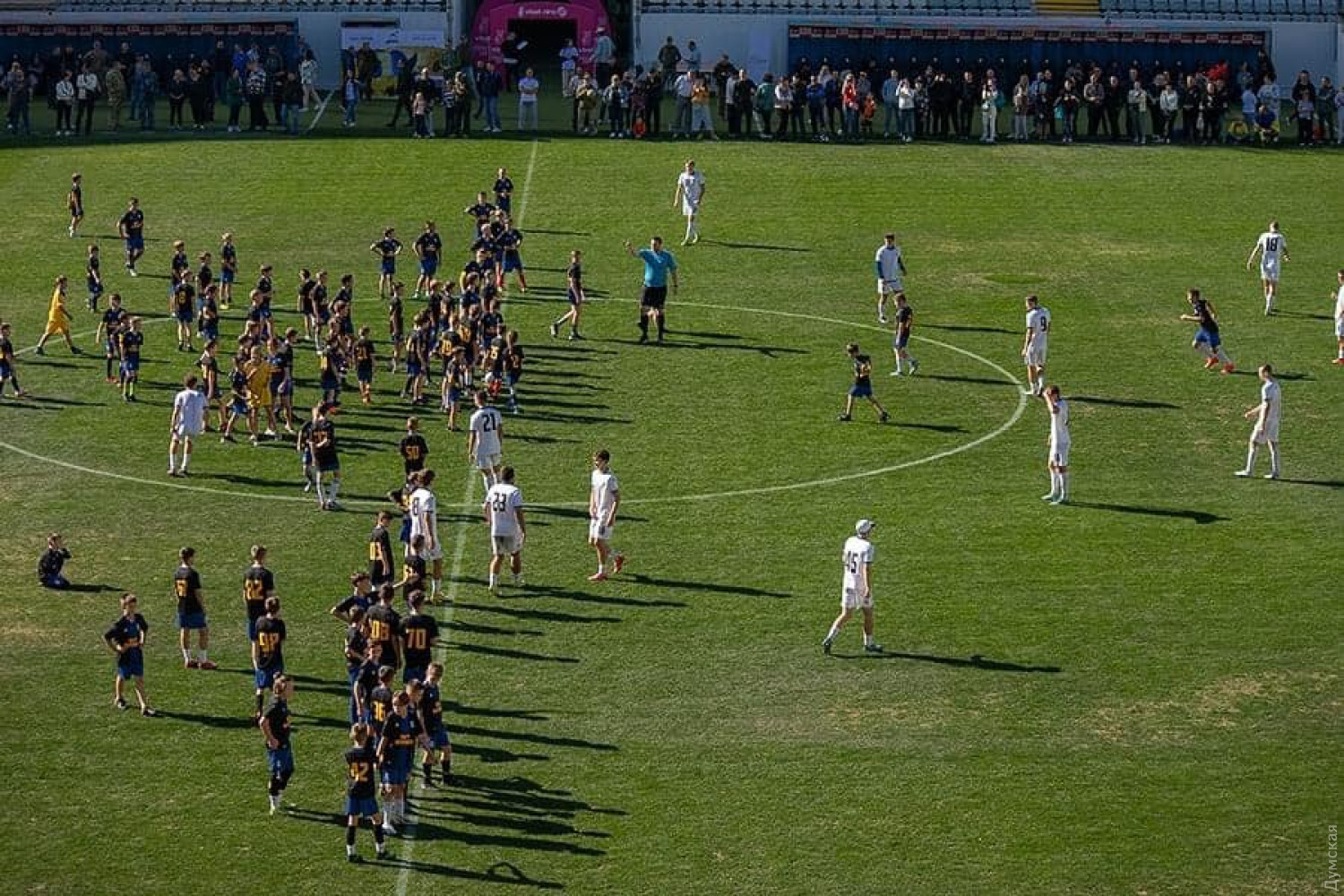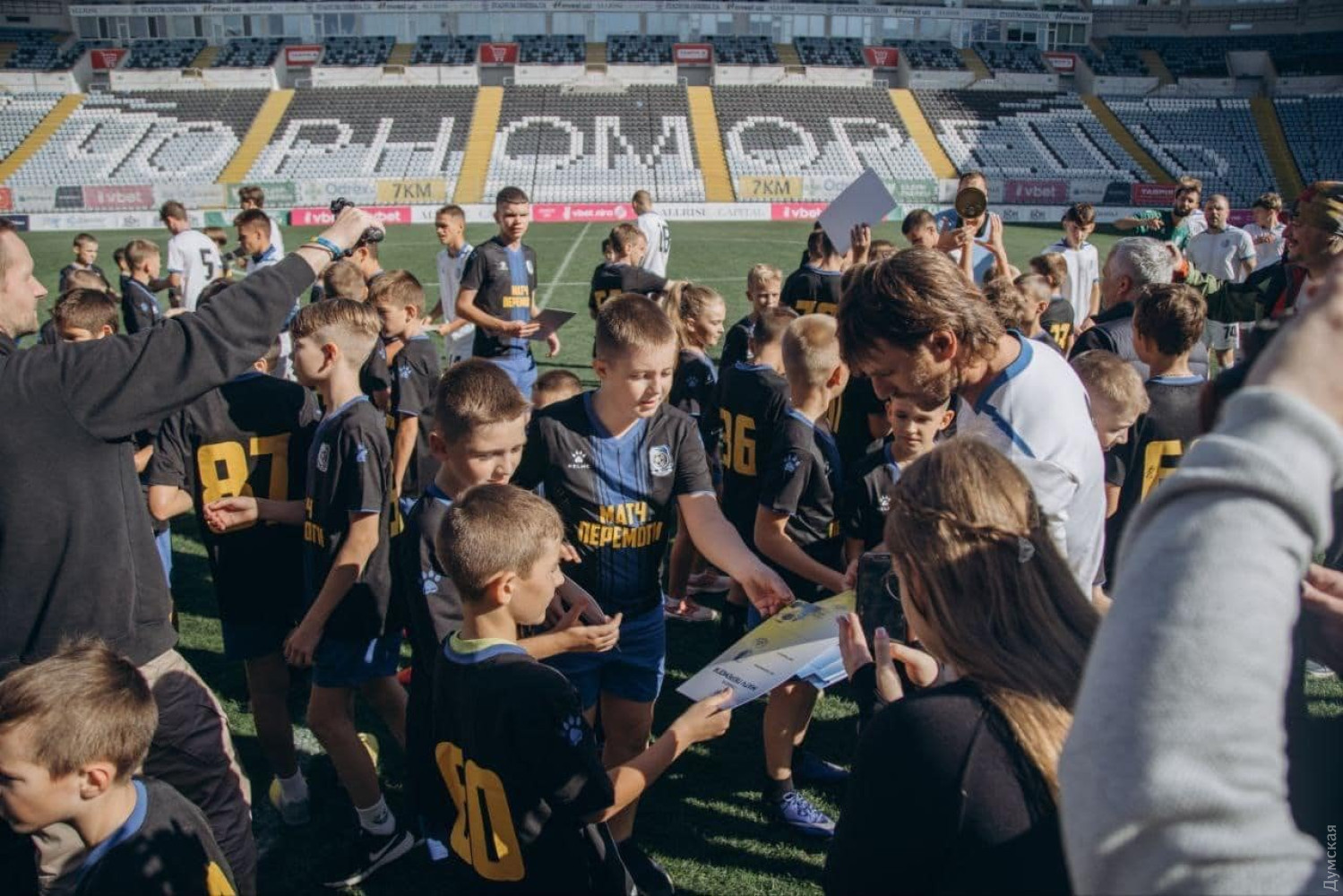На одеському «Чорноморці» понад сотня дітей захисників України обіграла професійних футболістів«Матч Перемоги» — дружня гра, у якій узяли участь 111 дітей військовослужбовців з Одеської області та футболісти «Чорноморця», відбулася на полі одеського клубу. Як повідомили в Одеському прикордонному загоні, матч завершився з рахунком 5:7. Дитяча команда «Победа» на останніх хвилинах забила два вирішальні голи, після чого тріумфатори підняли кубок чемпіонів. «На футбольному полі вирували неймовірні емоції: сльози від першого пропущеного м'яча, натовпом заштовханий м'яч у ворота супротивника, теплі обійми і безліч дитячих посмішок», — зазначили прикордонники. За підсумками матчу всі учасники взяли участь у церемонії нагородження — отримали грамоти та пам'ятні призи. Помітили помилку? Виділяйте слова з помилкою та натискайте control-enter |