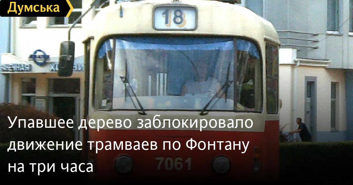 Сегодня около 7 часов утра на 2 станции Большого Фонтана упавшее дерево повредило контактную сеть. Движение трамвайных маршрутов 17, 18 и 19 было приостановлено на несколько часов.