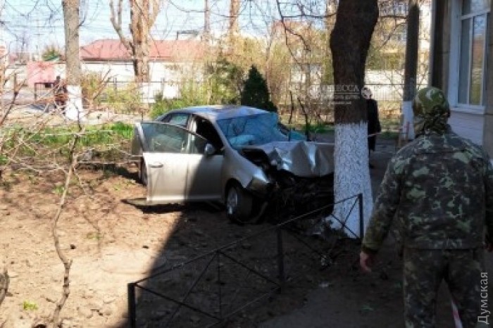 Сегодня около 11:45 в Дачном переулке «Фольксваген» выехал за пределы проезжей части, протаранил забор школы № 106, а после врезался в дерево.