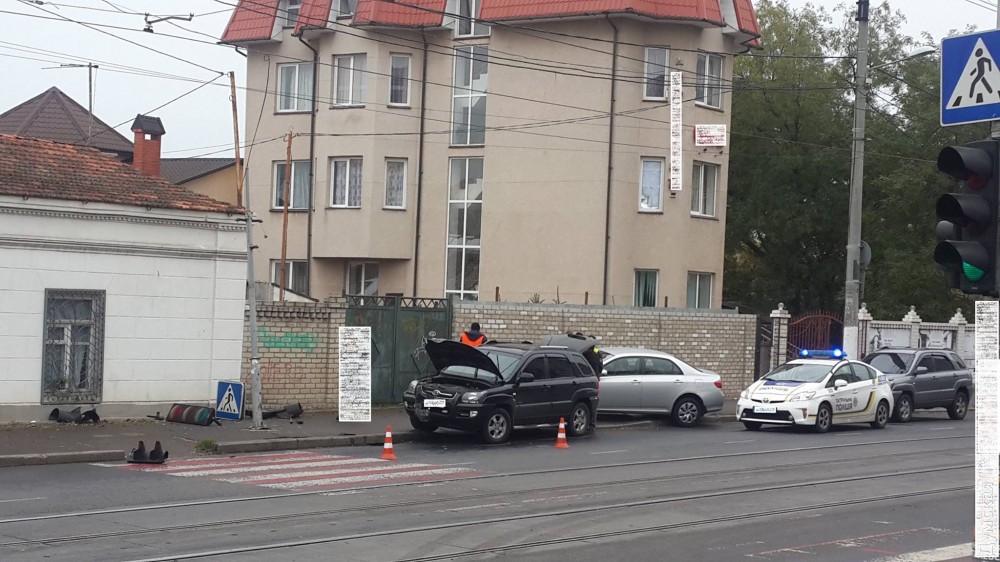В результате ДТП, которое произошло сегодня на одесском Фонтане, был поврежден светофор.