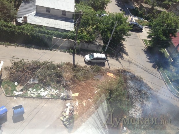Вскоре куча превратилась в настоящую свалку – сюда стали стаскивать строительный и бытовой мусор, который, к тому же, забивает ливневки и при малейшем дожде улица оказывается затопленной. Возмущенные нечистоплотностью соседей и бездействием коммунальщиков одесситы говорят, что сегодня эта свалка загорелась. «Мы безуспешно пытались потушить, пока не приехала бригада пожарных», — сообщают они.