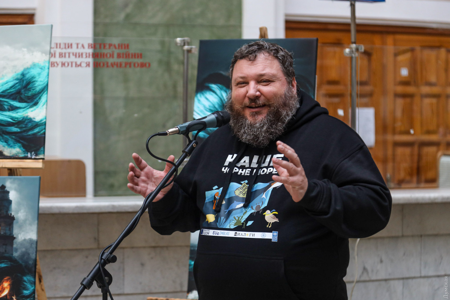 «Ми не забули про наше Чорне море, — розповіла експертка проєкту екологічного моніторингу Чорного моря під егідою Європейського союзу Олена Марушевська. — Цього року ми не могли не тільки купатися або засмагати, а й навіть проводити екологічний моніторинг — занадто небезпечно. Чорне море страждає від війни так само, як і ми. Ви всі чули про дельфінів, які з важкими травмами викидаються на берег, є проблема з хімічними забрудненнями, пов'язана з ракетами та іншим. Після перемоги ми обов'язково порахуємо всю шкоду, яку завдали окупанти».