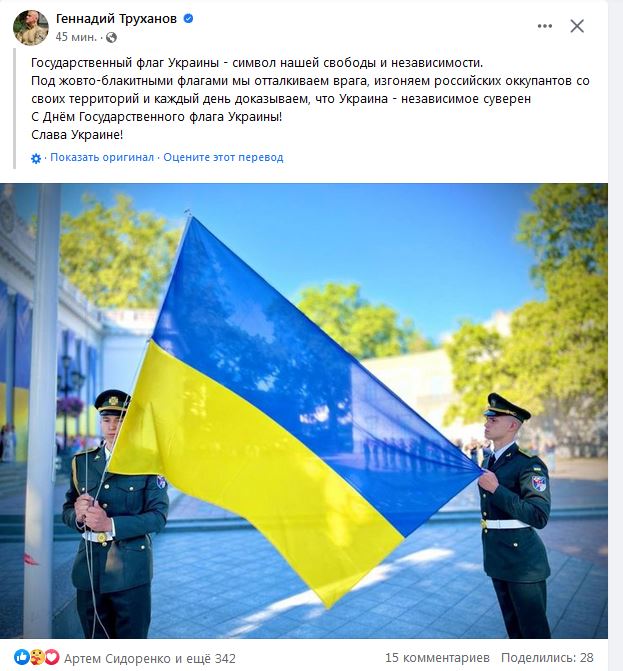 На честь Дня державного прапора на Воронцовському маяку в Одесі підняли жовто-синій стяг розміром 4,5 на 18 метрів. В урочистому заході взяв участь командувач Військово-морських сил України віце-адмірал Олексій Неїжпапа. Також на маяку були присутні військовослужбовці ВМСУ і морської охорони, співробітники Держгідрографії. Зазначимо, урочисте підняття величезного прапора України на одеському маяку відбувається вже четвертий рік поспіль, його організовують представники «Вишиванкового фестивалю». Помітили помилку? Виділяйте слова з помилкою та натискайте control-enter |