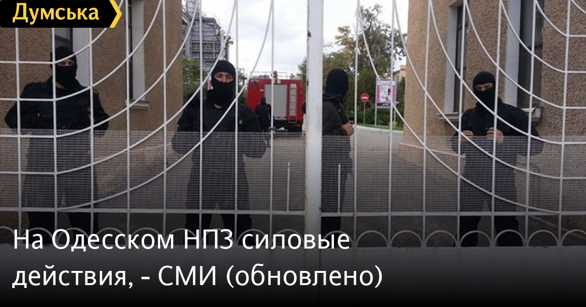 Обновлено в 18:00. По словам юриста НПЗ, примерно 150 человек в масках и черной форме при содействии сотрудников милиции проникли на территорию Одесского НПЗ. Работе предприятия они не препятствуют. Об их дальнейших планах сотрудникам завода ничего не известно.