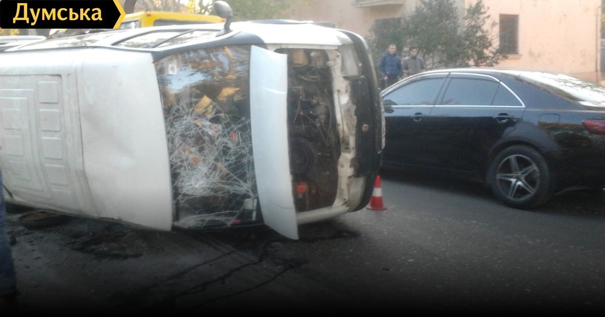 По словам водителя последнего, он ехал со стороны Фонтанской дороги, на перекрестке начал поворачивать налево. «В это время со стороны Черноморской дороги на большой скорости двигался микроавтобус. Ему нужно было проехать прямо, он еще прибавил газу — хотел проскочить. Но у меня полностью груженая машина, ее просто невозможно быстро остановить», — говорит водитель грузовика, представившейся Александром. Молодой человек утверждает, что ехал на разрешающий сигнал светофора. В то же время присутствующие на месте ДТП инспекторы Госавтоинспекции рассказали «Думской», что в момент столкновения в салоне автобуса находились 12 человек. Они подчеркнули, что это – служебный транспорт, который перевозил к месту работы сотрудников одного из предприятий города. В результате аварии пострадали два пассажира, их госпитализировали. При этом правоохранители говорят, что обстоятельства происшествия еще предстоит выяснить: «Оба водителя утверждают, что ехали на зеленый свет. Понятно, что такого быть не может, поэтому разбираемся, кто прав, кто виноват». Александр в свою очередь рассказал, что одна из пострадавших получила серьезную травму руки. «Когда автобус переворачивался, рука женщины оказалась в окне, ее придавило. Потом я помогал ей выбраться».
