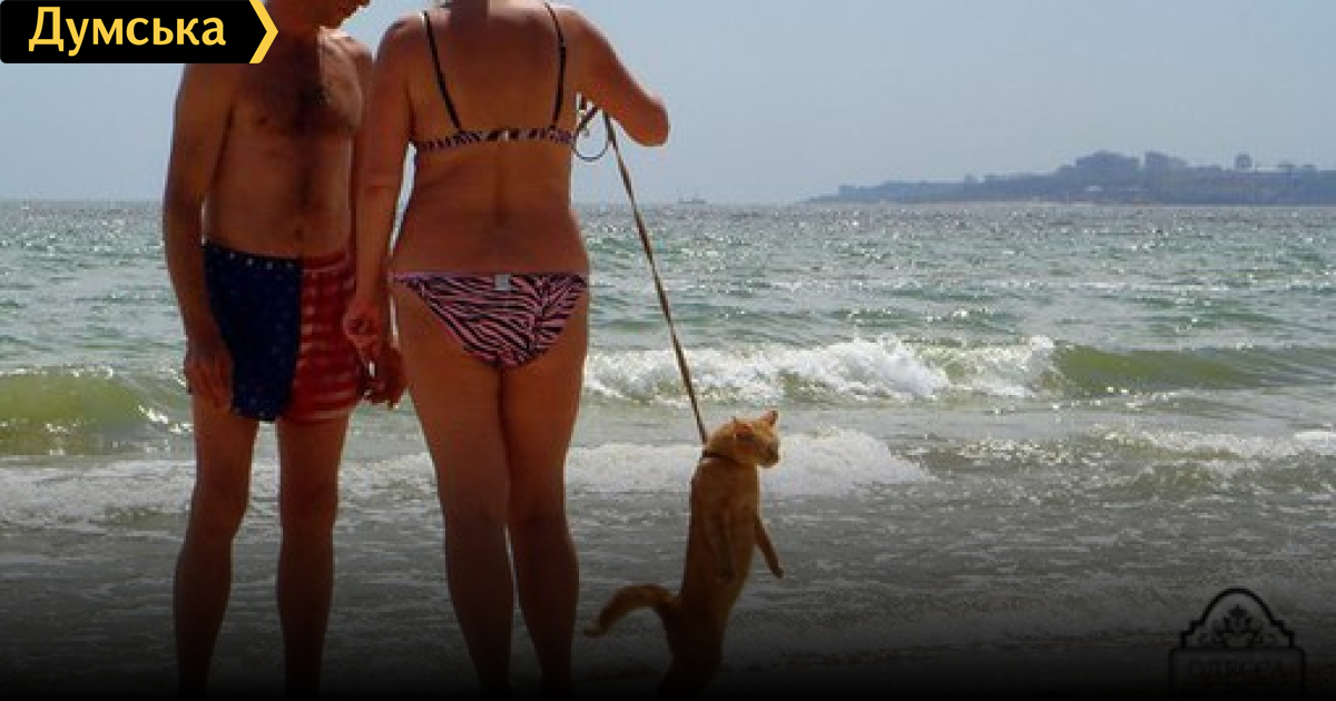 В минувшие выходные одесситка отдыхала на пляже в Лузановке вместе со своим котом, которого держала на поводке. Несмотря на старания хозяйки, питомец был не в восторге от происходящего.