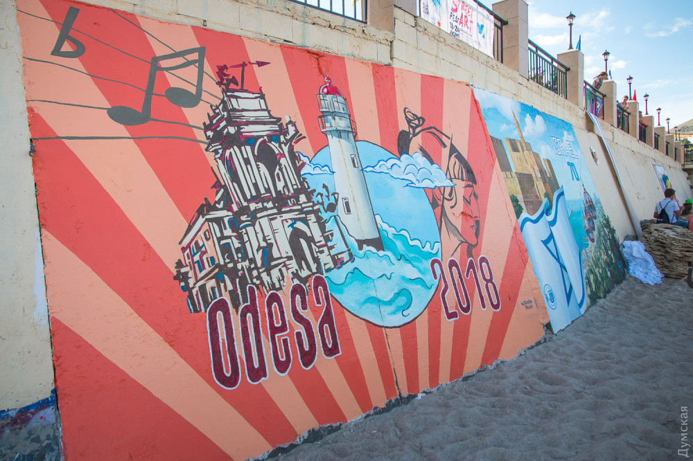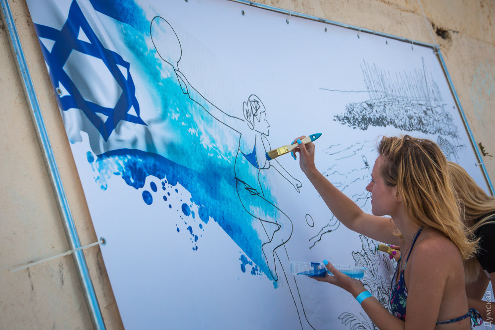 Новый мурал появился на подпорной стене одесского пляжа в районе 15-й станции Большого Фонтана. Над картиной в течение шести дней совместно трудились одесские и израильские художники, а само изображение посвящено 70-летию Государства Израиль.
