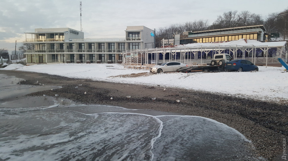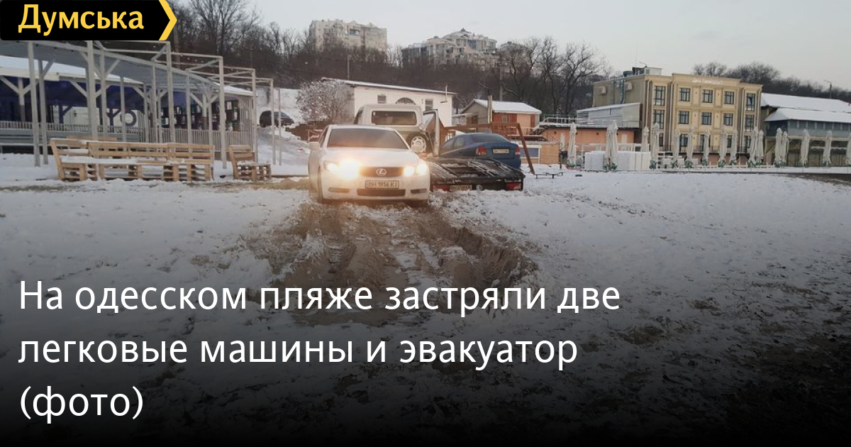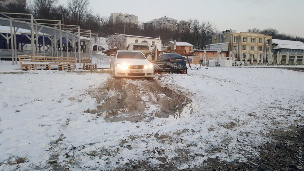 Два легковых автомобиля и эвакуатор застряли на одесском пляже Ланжерон.