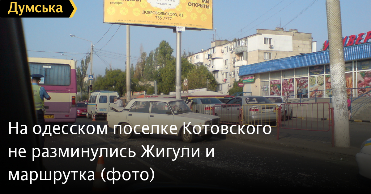 Утром на поселке Котовского, возле универсама в районе Лузановки, произошла авария с участием автомобиля «Жигули» и маршрутки.