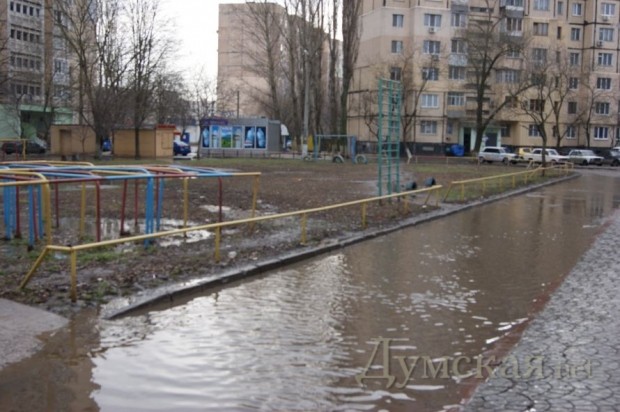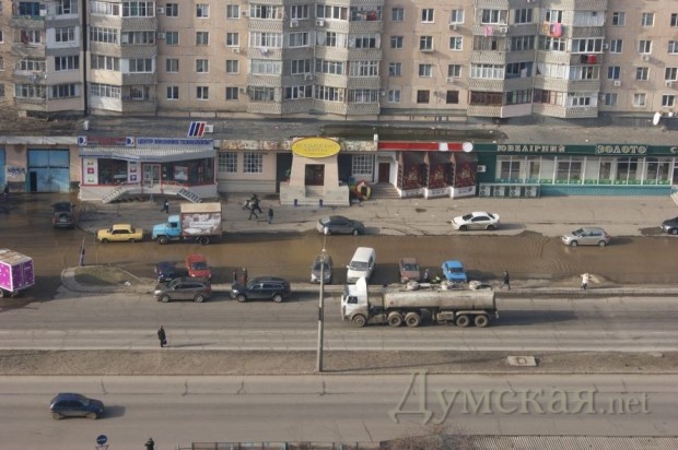 Вода из прорвавшего водопровода затопила участок проезжей части на Днепропетровской дороге и дворы жилых домов.