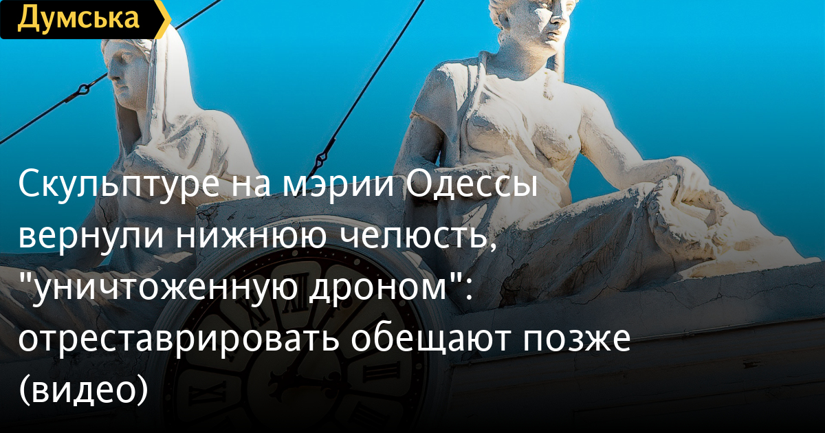 Скульптура «Ночь» на здании мэрии Одессы, якобы поврежденная дронами, снова обрела нижнюю челюсть.