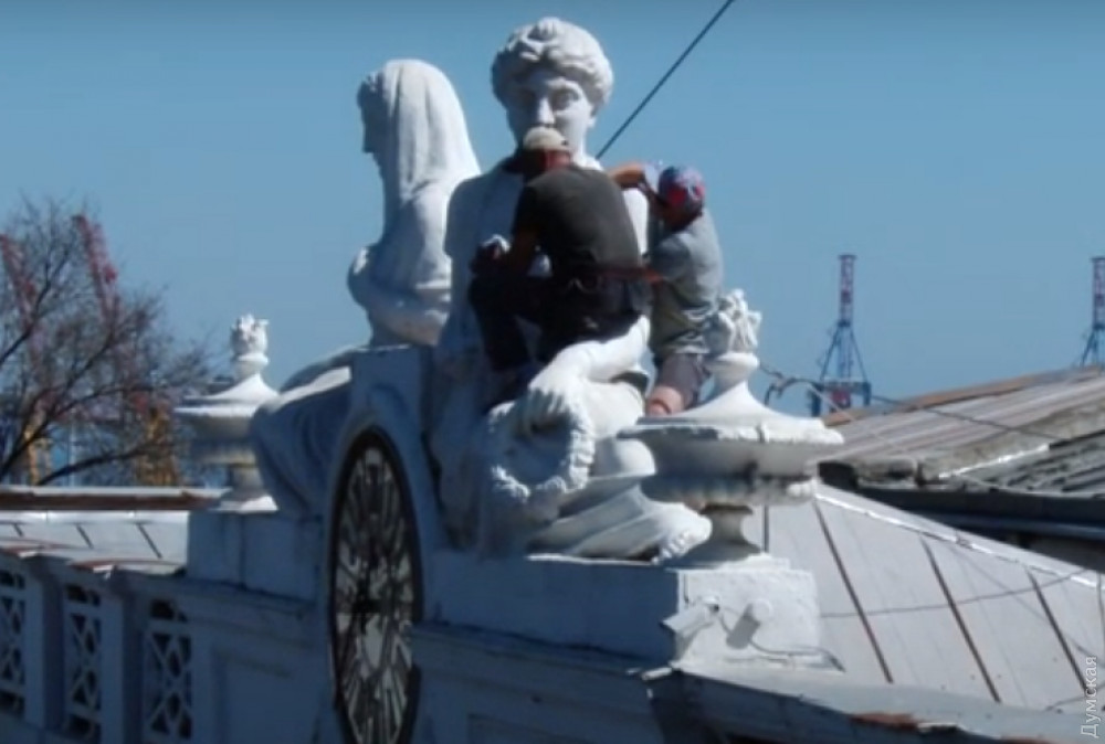 «Мы неоднократно заявляли, что скульптура над часами «День и Ночь» находится в очень ужасном техническом состоянии, поэтому при разработке научно-проектной документации по реставрации здания Старой Биржи были включены работы по реставрации этих двух скульптур, но накануне Дня города у нас появилась возможность провести первоочередные противоаварийные работы на этих скульптурах. Это не окончательные работы. Скульптуры будут отреставрированы во время полномасштабных работ. Сегодня за счет внебюджетных средств начались работы, которые обезопасят гостей города, и они будут сделаны за сутки. Это по факту консервация скульптур для того, чтобы в дальнейшем можно было провести полноценную реставрацию».