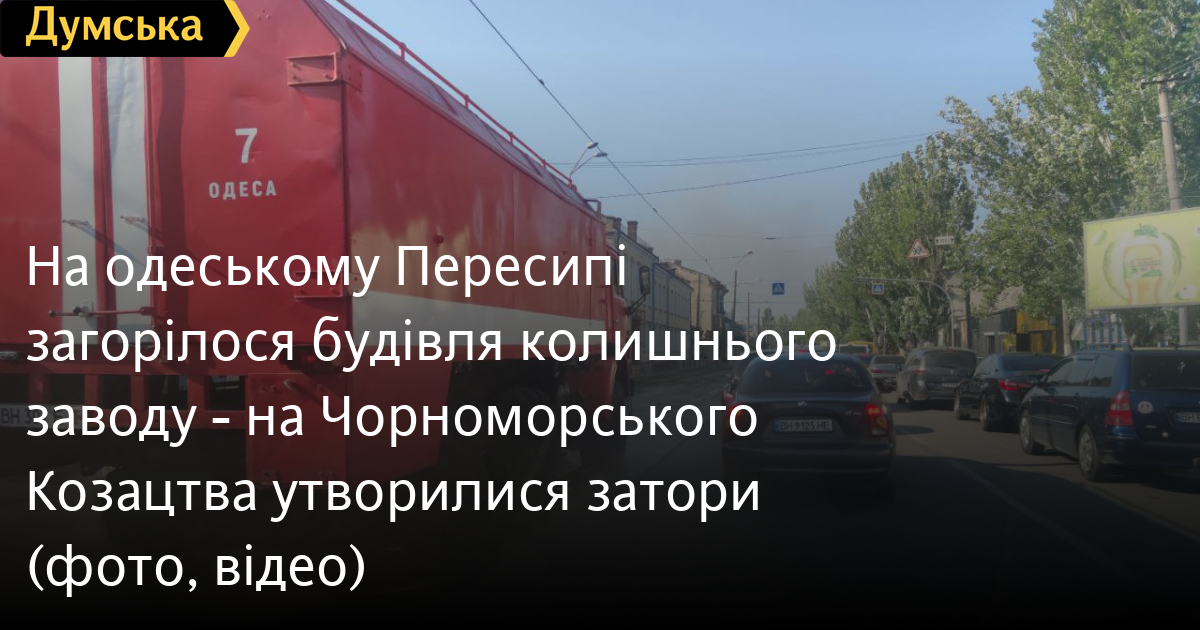 На одеському Пересипі загорілося будівля колишнього заводу — на Чорноморського Козацтва утворилися затори (фото, відео)Будівля колишнього заводу «Одесільмаш» на вулиці Чорноморського Козацтва загорілася в п'ятницю вдень. Полум'я охопило триповерхову будівлю, стовп чорного диму видно здалеку. Як передає кореспондент «Думської», у районі пожежі утворилися величезні затори. Пожежні машини об'їжджають затори трамвайними коліями. ОНОВЛЕНО. Як повідомили в обласному управлінні ДСНС, майже дві години понад 70 рятувальників боролися з пожежею у триповерховій будівлі заводу. Була загроза розповсюдження вогню на велику площу, а також на поряд розташовану 12-поверхову будівлю — на щастя цього вдалося уникнути. В місцях значного задимлення рятувальники працювали в апаратах для захисту органів дихання та зору. Пожежа ліквідована на площі 1000 кв.м. Загиблих та постраждалих немає. СМЕРТЬ РОСІЙСЬКИМ ОКУПАНТАМ! Помітили помилку? Виділяйте слова з помилкою та натискайте control-enter |