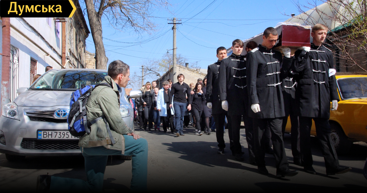 Небольшой участок Лавочной улицы на Слободке с трудом смог вместить всех одесситов, пожелавших проводить в последний путь 51-летнего солдата 44 артбригады Владимира Егоренко, павшего 29 марта на востоке Украины. Панихида прошла в дворе дома номер восемь, где вырос герой. Почтить память бойца пришло более двухсот человек. Сослуживцы, родственники, друзья и просто неравнодушные одесситы. Городской голова Геннадий Труханов также приехал выразить соболезнования семье погибшего воина. Тетя погибшего Лидия Бондарь прочитала стихотворение, которое могло бы стать эпитафией: «Он так хотел, чтоб мир добрее, лучше стал. И жизнь свою присяге воинской отдал. Стоят друзья, и гильзы залпов в их руках. Стоят друзья, они за друга отомстят. Мы не хотим войны теперь. Пришла весна. Не нужно новых нам потерь » Похоронят Владимира Егоренко на Западном кладбище. Вечная память павшим за свободу и независимость Родины! Фото Александра Гиманова