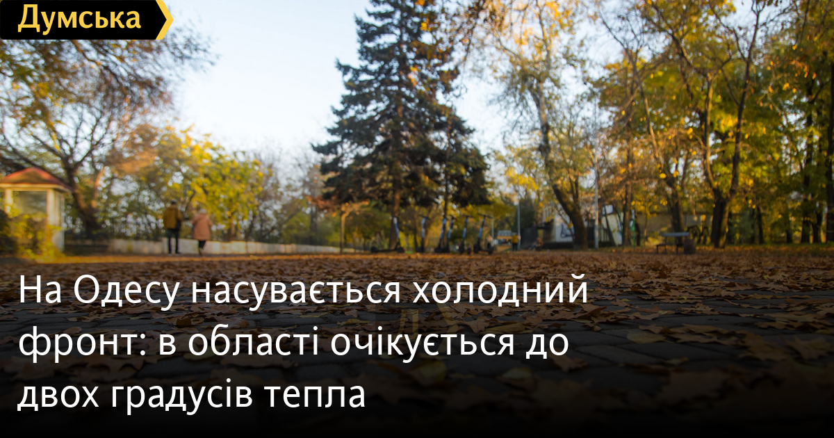 На Одесу насувається холодний фронт: в області очікується до двох градусів теплаНа Одесу насувається похолодання: вже ввечері 24 вересня почне посилюватися вітер, а завтра температура повітря почне стрімко падати. Як розповіла «Думській» керівник відділу прогнозів Гідрометцентру Чорного та Азовського морів Олена Тарнавська, вітер посилиться до 15–17 м/с вже ближче до вечора і збережеться вночі та вранці наступного дня. «Очікується досить істотне похолодання, — зазначила синоптик. — Якщо вчора температура була вночі +8+15°, вдень +22+27°, то найближчої доби вона знизиться до +8+13 градусів тепла в області, і +15+20° вдень. По Одесі вночі +11㐁°, вдень — +17+19°». На вихідних температура продовжить падати і на півночі Одеської області може досягти всього лише 2 градусів тепла. «Вітру вже не буде, але температура опуститься до +5+10°, а місцями на півночі області — всього до двох тепла, — уточнила Тарнавська. — Вдень як і раніше +15+20°, і такий температурний фон збережеться 28–29 вересня, після чого почнеться потепління, але не істотне. Температура морської води поки тримається на рівні 19–20°». Заморозків в Одесі, за словами синоптика, поки не очікується, як і істотних опадів на тижні не прогнозується. СМЕРТЬ РОСІЙСЬКИМ ОКУПАНТАМ! Помітили помилку? Виділяйте слова з помилкою та натискайте control-enter |