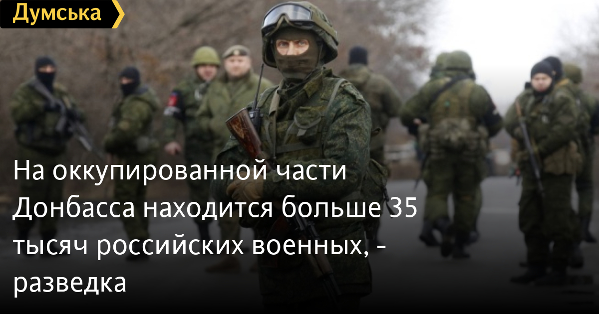 По данным военной разведки Украины, штатная численность российских оккупационных войск на Донбассе составляет 35,5 тысяч человек.