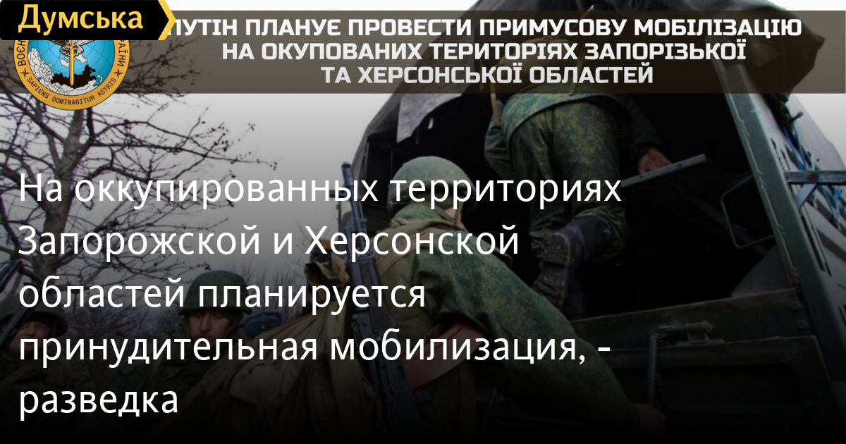 Путин планирует провести принудительную мобилизацию на оккупированных территориях Запорожской и Херсонской областей.