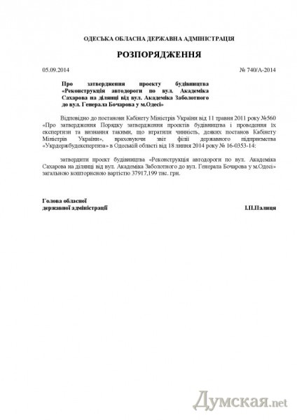 А 5 сентября губернатор Игорь Палица подписал распоряжение, которым утвердил проект реконструкции улицы Сахарова на участке от Академика Заболотного до Генерала Бочарова. За ремонт 950 метров дороги бюджет выложит 37,9 миллионов, или почти 40 тысяч гривен за один погонный метр!