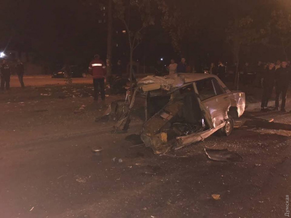 После столкновения с автомобилем «Митсубиси» «шестерку» отбросило на электроопору и разорвало на две части.