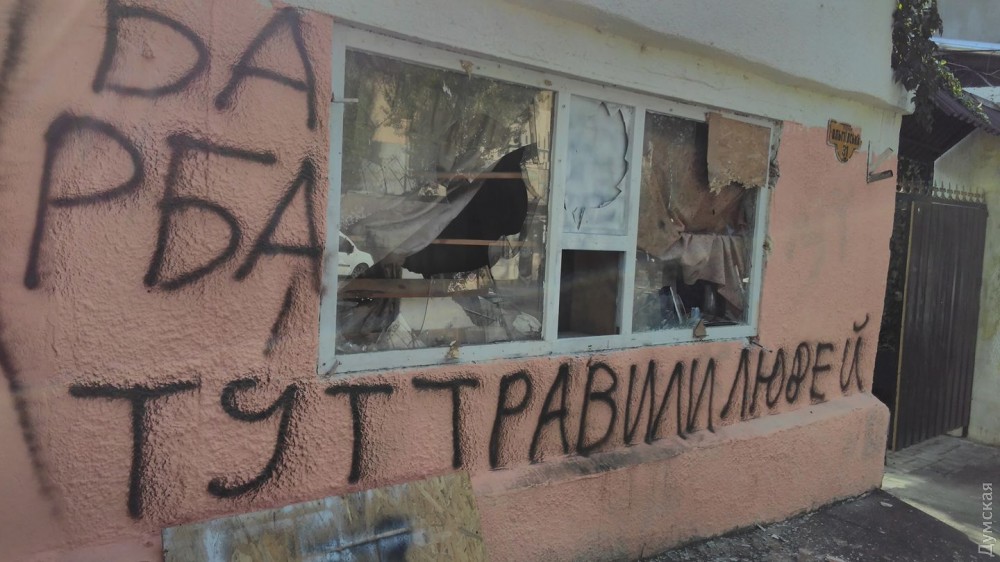 Нападавшие сорвали решетку с окна помещения и разнесли все внутри и снаружи, написав на стене «Барба, тут травили людей». Вячеслав Барба — начальник Портофранковского отделения полиции.
