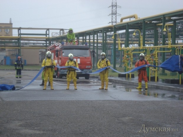 «В связи с введением в действие, согласно решению правительства, режима повышенной готовности на территории нашей области на Одесском припортовом заводе была проведена отработка практических навыков руководящего состава и специалистов сил гражданской защиты, необходимых для предотвращения возникновения или ликвидации чрезвычайных ситуаций. Руководство припортового завода совместно со службой ГСЧС осуществляют постоянную проверку готовности сил гражданской защиты объекта повышенной опасности», — сказал помощник директора завода Александр Шамарин.